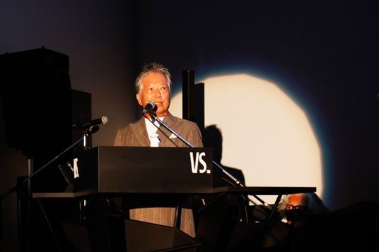 また、当館の設計を監修した建築家の安藤忠雄氏と、当館の柿落としとなる新作個展を開催するアーティストの真鍋大度氏、大阪府とも関係の深いフランスのアンギャン=レ=バン市 行政サービス統括本部長のローラン・ギディ氏、オリックス不動産株式会社専務執行役員 高橋豊典氏も加わり、「VS.」ロゴの点灯演出を執り行いました。