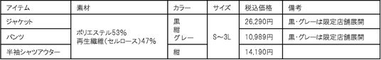 ジャケットには消臭テープを付けることで汗のにおいを軽減し、ご自宅での手洗いが可能なため暑くなるこれからの季節も安心してご着用いただけます。 3.着まわしやすくコーディネートを楽しめるアイテム展開 ジャケット・パンツ・半袖ジャケッツの3アイテムで展開。新たに登場したジャケッツは、シャツよりもきちんと感がありながらジャケットよりも気軽に羽織ることができるシャツアウターです。