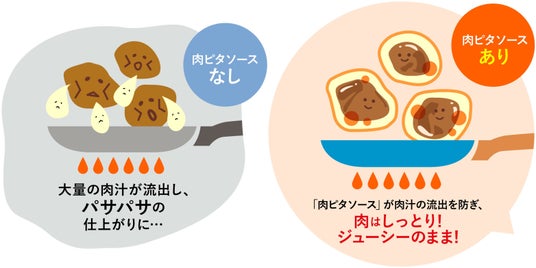 ・当社の特許技術を使った「肉ピタソース」で 肉の水分を逃さずにやわらかく焼ける!