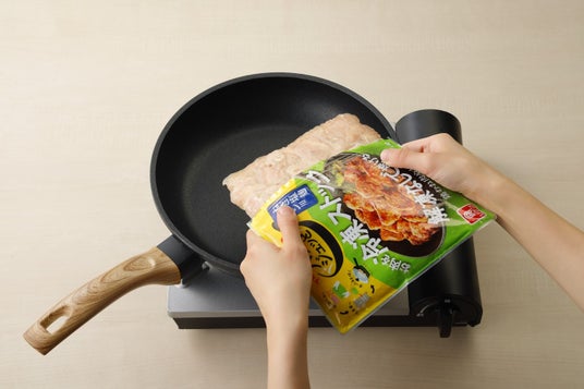 そこで、20~40代の共働き子育て世帯をターゲットに、パサつきがちな鶏むね肉でもジューシーに焼ける、解凍要らずの下味冷凍用おかずの素を開発しました。時間に余裕がある日に切った肉を入れて冷凍ストックしておき、食べたい日は解凍せずフライパン1つで簡単におかずができる商品です。