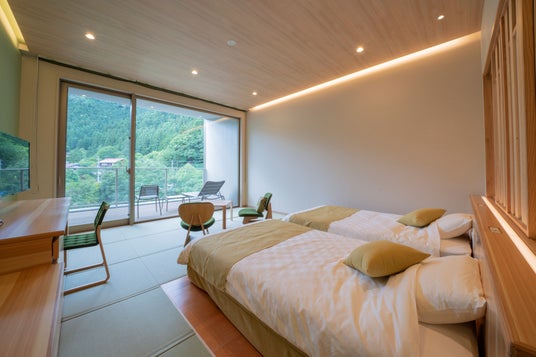 ◆休暇村奥武蔵 埼玉県飯能市西部、高麗川の清流に囲まれ、里山の風景が色濃く残る自然豊かな場所に立つリゾートホテル。2018年には新館「にしかわ館」を増築し、浴室やレストランもリニューアルしてグランドオープンしました。「ムーミンバレーパーク」のオフィシャルホテルとして「ムーミンスペシャルルーム」も販売。夕食後には「月と星のテラス」で開催する「スタービューイング」や、土曜日に開催する「朝ヨガ」「週末焚火倶楽部」などの体験プログラムも人気です。