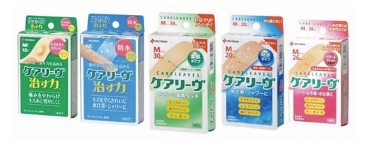 ニチバンの「ケアリーヴ(TM)」は、柔らかく通気性に優れた高密度ウレタン不織布素材を使用し、「肌へのやさしさ」と「フィット感」を兼ね備えた救急絆創膏です。スタンダードな「ケアリーヴ(TM)」のほか、モイストヒーリング(湿潤療法)でキズを早くきれいに治す「ケアリーヴ(TM)治す力(TM)」「ケアリーヴ(TM)治す力(TM)防水タイプ」、防水性に優れた「ケアリーヴ(TM)防水タイプ」、丈夫なストレッチ布テープを採用した「ケアリーヴ(TM)パワー&フィット」、楽しく貼れるジュニアサイズの「ケアリーヴ(TM)キャラクター」などを展開しています。