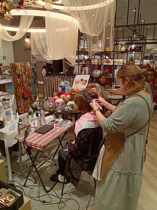 貸出のきものをご利用される方はもちろん、お持ちのきものに久々に袖を通される方など、皆様お好きなきものをお召いただき、当日はヘアセットもおこない、ららぽーと館内を楽しく巡っていただきました。