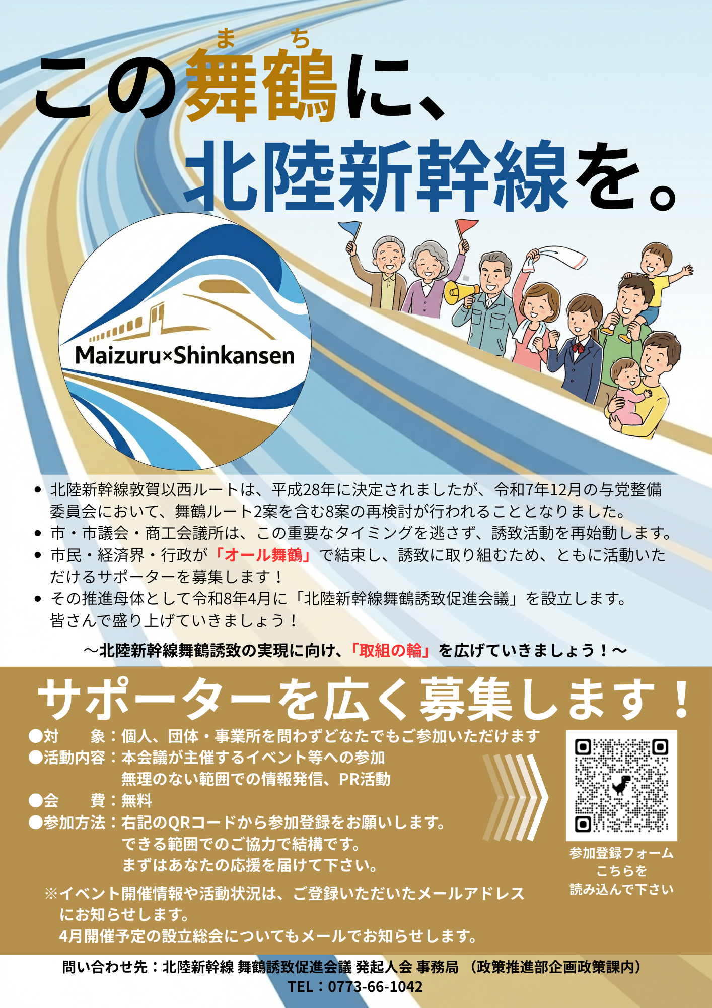 北陸新幹線舞鶴誘致の実現に向け、サポーターを広く募集します!