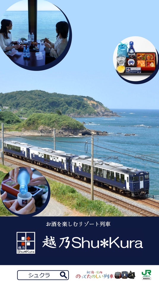 2025年7月7日~7月20日のPR放映は、新潟・庄内エリアを運行している、のってたのしい列車「海里」「越乃Shu*Kura」「SLばんえつ物語」です。日本海の景色と食を堪能したり、地酒王国・新潟のお酒を楽しんだり、海沿いや山の中を駆け抜ける車窓の風景を満喫したりと楽しみ方は色々。夏休みのお出かけにいかがですか?皆さまのご乗車をお待ちしています!