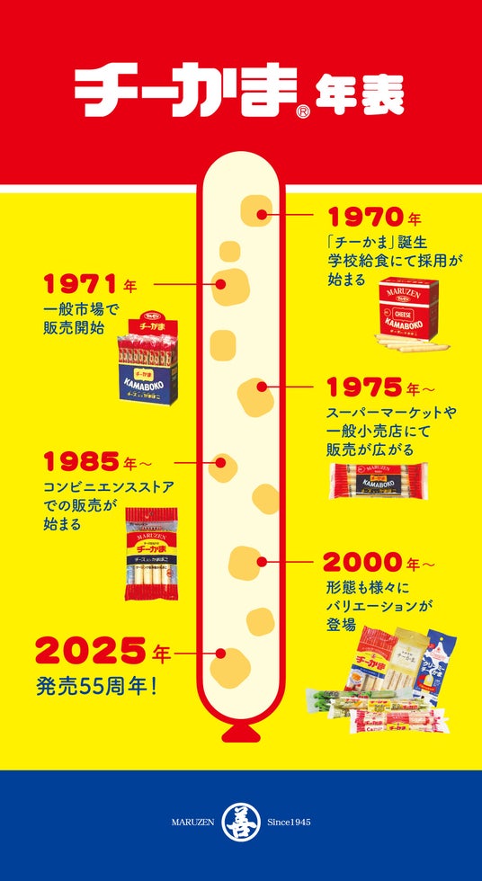 その後、スーパーマーケットやコンビニエンスストアでの販売もひろがり、発売から今日まで、様々な形態やバリエーションを揃え、多彩な「チーかま」を展開してまいりました。