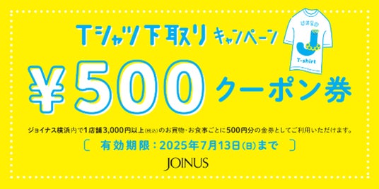 相鉄グループの(株)相鉄ビルマネジメント(本社・横浜市西区、社長・左藤 誠)が運営するジョイナスは、SDGs取り組みの一環として、2025年6月7日(土)・8日(日)の2日間、不要なTシャツをお持ちいただくと、ジョイナスでご利用いただける500円クーポン券と交換できる、「Tシャツ下取りキャンペーン」を開催いたします。