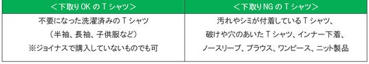 ご家庭の不要なTシャツで、おトクな500円クーポン券がもらえる!ジョイナス「Tシャツ下取りキャンペーン」