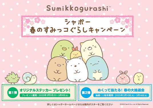 サンエックス株式会社(本社:東京都千代田区)は、株式会社ジェイアール東日本都市開発(本社:東京都渋谷区)が運営するシャポー・ビーンズ全館で、「春のすみっコぐらしキャンペーン」が2025年3月3日(月)から3月16日(日)まで開催されることをお知らせします。