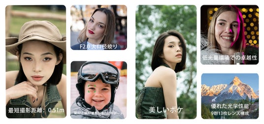 EDレンズ3枚、高屈折レンズ4枚、非球面(ASPH)レンズ1枚を含む9群13枚の高度な光学設計により、画面の隅々まで高い解像性能を発揮します。さらに、静音性に優れたViltrox STMモーターを搭載。高速かつ正確なオートフォーカスにより、初心者でも被写体の一瞬の表情や動きを逃さずに捉えることができます。