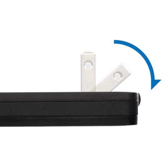 折りたたみプラグでもっとコンパクトにプラグ部分を折りたためるので、バッグに入れて出張や旅行などの外出先にも気兼ねなく持ち出すことができます。