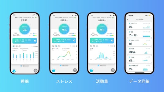・つけるだけで「睡眠スコア」「ストレスレベル」「活動量」を計測