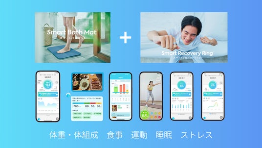 加えて、体重測定できるバスマット「スマートバスマット」と同じアプリで管理されます。これにより、体重・食事・睡眠・ストレス・活動量をすべて記録・分析でき、バラバラだったデータを統合管理することが可能となりました。