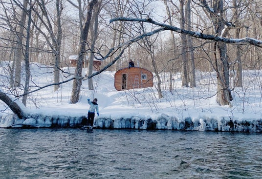 雪が降り積り、静謐な空気に包まれるモノクロームの十和田の森を歩きながら、唯一無二の冬サウナを目指します。水温1℃~5℃の十和田湖が水風呂というダイナミックさと緩やかなときの流れを味わうことができます。