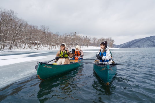 ガイドの解説に耳を傾け、雪と氷に閉ざされた十和田湖の絶景をカヌー目線でゆっくりと楽しむことができます。