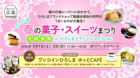 広島県内19市町等が参加する「ひろしまブランドショップ協議会」主催で、3月1日(土)、2日(日)の2日間、「ひろしま春の菓子・スイーツまつり大試食祭」を開催します。