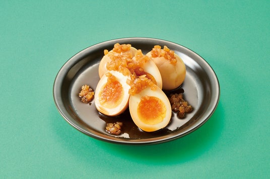 たっぷりかかった、きざみたまねぎのシャキシャキ食感が特長のおろしにんにくと、かつお節の風味をふんだんに生かしたほっかほっか亭オリジナル香味だれの煮たまごです。