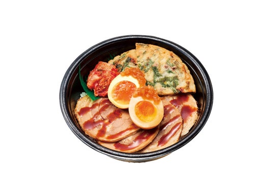 ・韓国風煮たまご&チヂミ入り チャーシュー丼:770円(税込)【写真右】
