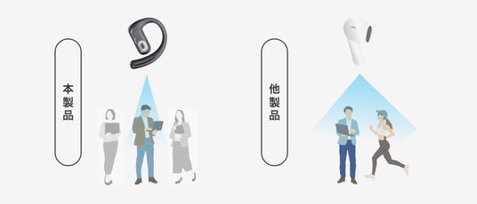 また、音の広がりを抑え耳にダイレクトに届くので、プライバシーを守りパーソナル空間を作り出します。