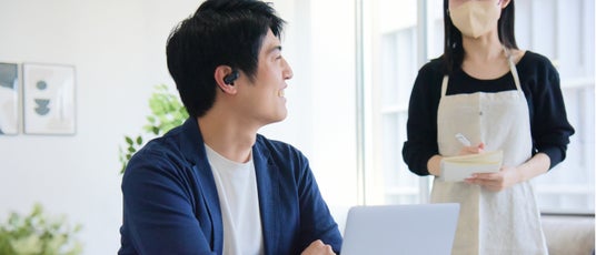 周囲の音も聞き取れるので、イヤホンをつけたまま、会話や注文にスムーズに対応可能です。快適さと外とのつながりを両立します。