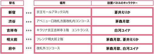 1)概要:等身大キャラクターパネルが設置されている京王線新宿駅や京王井の頭線渋谷駅など全5駅のラリースポットを巡り、LINE公式アカウントからスタンプラリーにアクセスし、QRコードを読み込むことでデジタルスタンプを集めるスタンプラリーを開催いたします。