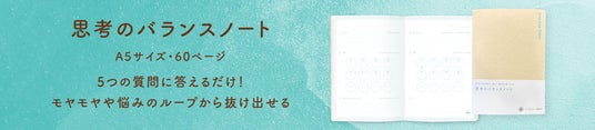アウェアファイのアプリで人気の「5コラム法」を手書きで実践できる専用ノートです。「率直な気持ちや考えは、手書きの方が吐き出しやすい」「一つのノートを見返すことで、自分の傾向や成長に気づきたい」というアプリのユーザーさんからのご要望により誕生しました。