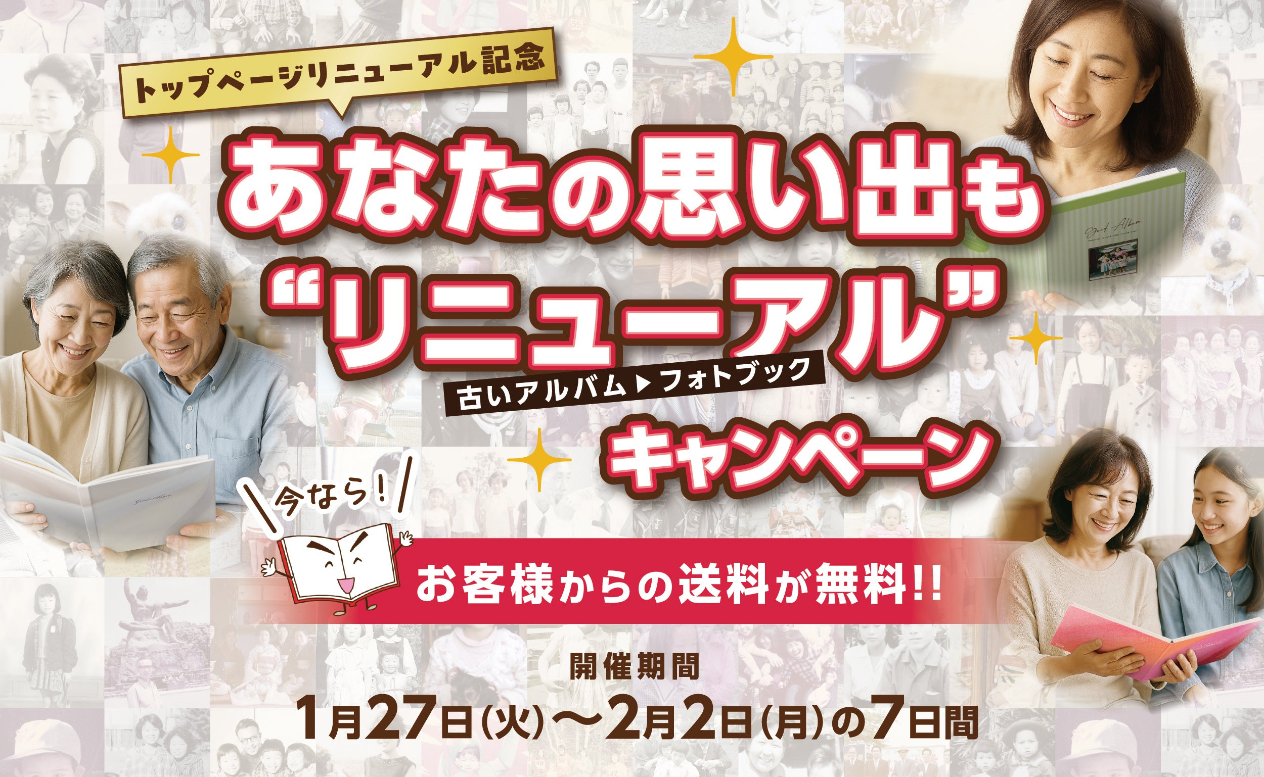 アナログ写真に特化した写真整理サービス『おくってフォトブック』トップページリニューアルおよびギフトサービス開始のお知らせ ~「あなたの思い出リニューアル」キャンペーン開催。期間中写真送料を無料に~