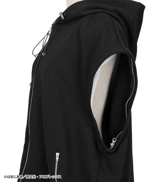 また、前面のジッパーには合皮製のバンドが取り付けられており、結束バンドのバンドグッズをイメージした商品として、細部にいたるまでこだわったパーカーとなります。