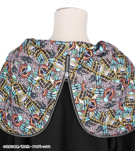 フードの裏地には結束バンドの各メンバーの楽器をデカール風デザインにして、ステッカーボムのようにあしらうことで、ストリート系ファッションのようなカジュアルなコーディネートを楽しむことが出来ます。