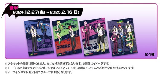 全国のROUND1 100店舗にて、対象のクレーンゲームに500円投入すると、もれなくオリジナルイラストカードをプレゼントいたします。※賞品はなくなり次第終了となります。