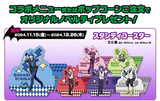 各店舗で販売する対象メニュー・ポップコーンをご注文いただいたお客様には、コラボメニュー限定ノベルティをプレゼントいたします。