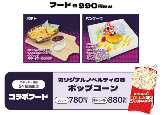 全国のボウリングとカラオケ92店舗でコラボメニューを、全国のスポッチャ54店舗にてポップコーンを販売いたします。