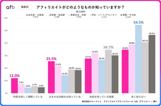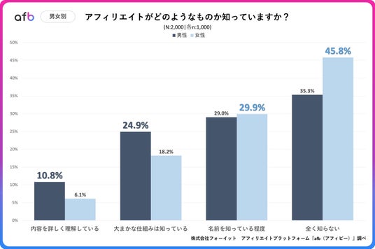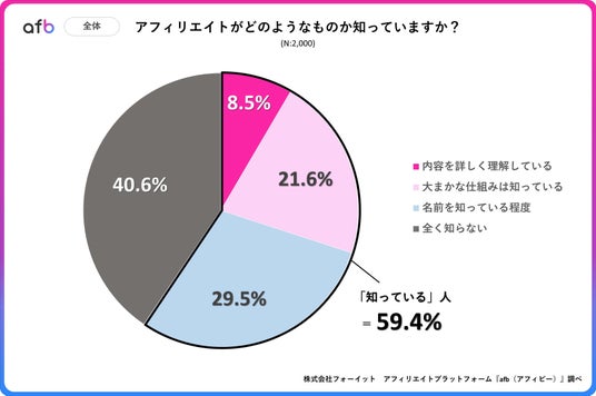 アフィリエイトプラットフォーム「afb(アフィビー)」< https://www.afi-b.com/ >の開発運用をおこなう株式会社フォーイットは、全国の20代~60代までの男女2,000人を対象にアフィリエイトに関するアンケートを実施し、年代別等の特徴についてまとめました。