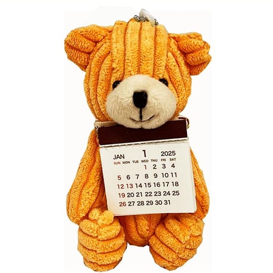 首からカレンダーを下げたクマのぬいぐるみキーホルダー。推しの色で選べる全9色展開。