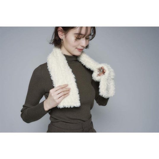 片側についたループに通すだけで首まわりを温かくカバーしてくれるネックアイテム。モカベージュとオフホワイトの2色展開。