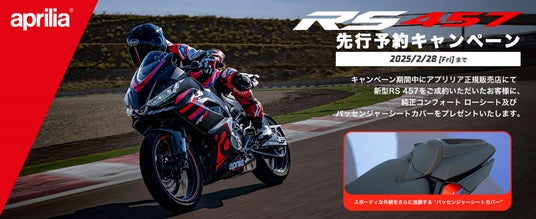 ピアッジオグループジャパン株式会社(本社:東京都港区芝二丁目、代表取締役:ネリ・ミクラウス)は、洗練されたテクノロジーと純粋なレーシングスタイルを継承したライトウェイトスポーツモデル、アプリリア新型RS 457の本格入荷を前に『新型RS 457 先行予約キャンペーン』を、全国のアプリリア正規販売店にて、2025年2月28日(金)まで実施致します。