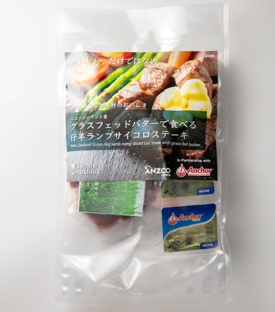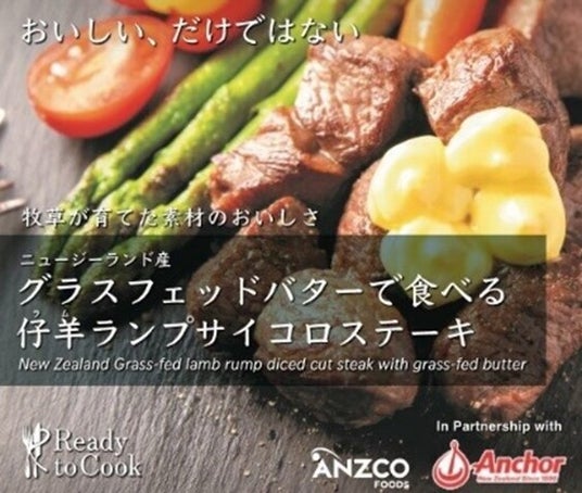アンズコフーズ株式会社がニュージーランド乳業最大手のフォンテラ社とのコラボ商品「グラスフェッドバターで食べる仔羊ランプサイコロステーキ」「グラスフェッドバターで食べる牧草牛サーロインステーキ」を新発売