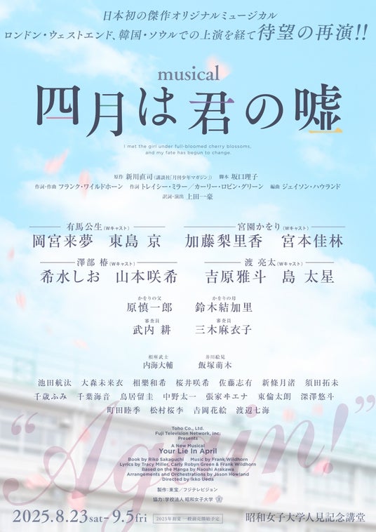 さらに2025年8月~9月に再演されるロンドン、ソウルでも上演された日本発の傑作オリジナルミュージカル『四月は君の嘘』への出演も決定。ぜひこちらにも注目して頂きたい。