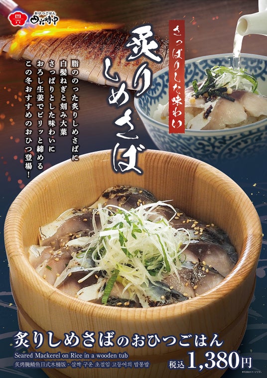 冬季限定商品ご紹介「炙りしめさばのおひつごはん」(税込1,380円)