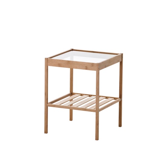 SNSでも大人気の商品。天板が強化ガラスなのでお手入れが簡単です。竹素材との組み合わせなのでとても軽く、移動も楽々です。シンプルなデザインなので、どんなお部屋にも合わせやすい商品です。丈夫な天然素材である竹製で、あたたかく心地のよい雰囲気をお部屋にもたらします。