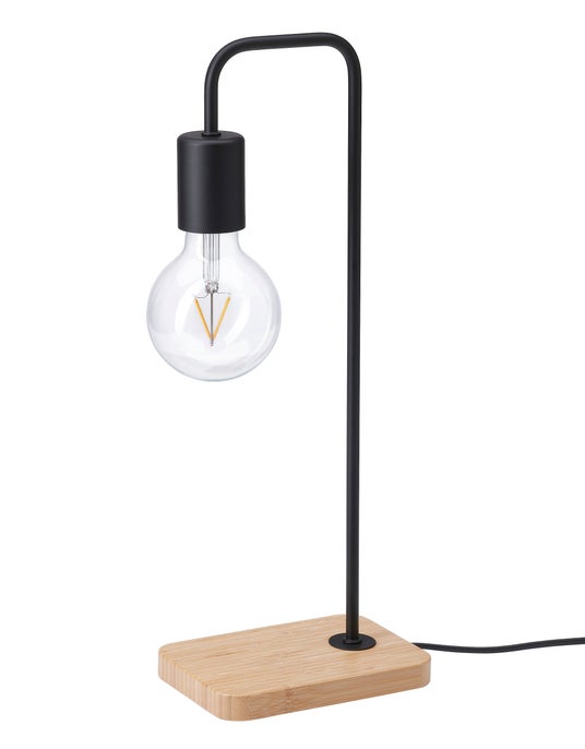 コンパクトなので使う場所を選びません。お部屋に心地よいムードを演出します。曲線状の金属と竹製のベースが絶妙なコントラストを生み出し、電球を加えて自分好みにアレンジできます。