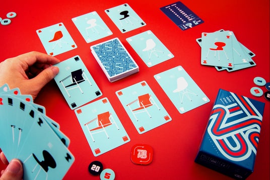 ゲームを盛り上げるカードにはヴィンテージもののイスのアートが。シンプルで視認性が高く、またプレイ感のよい触り心地になっています。計算に便利なサマリーカード付き。