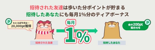 また、友達や家族を招待し新規登録をすると招待した人・された人両者ともにポイントが貯まるほか、招待された人が獲得したポイントの1%が翌月還元される「ティアボーナス」制度も導入します。