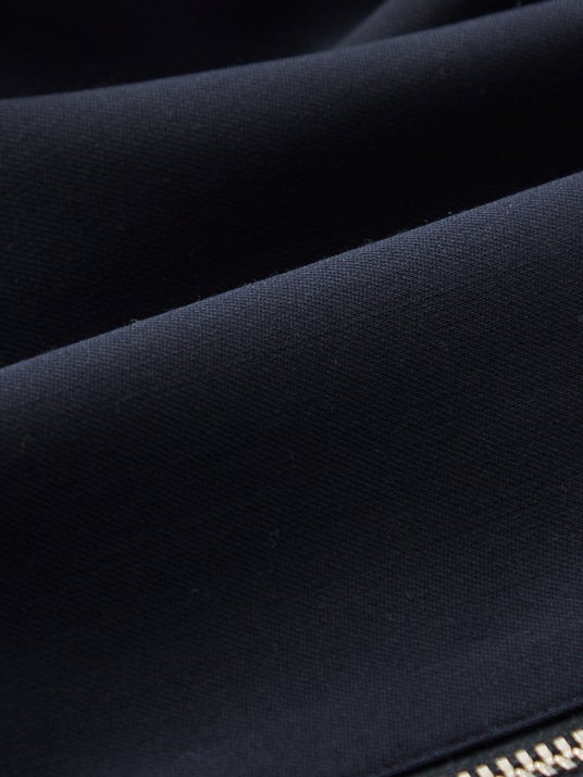 ファスナーや裏地の選定にもこだわり、無駄を削ぎ落とした洗練された印象に仕上げています。