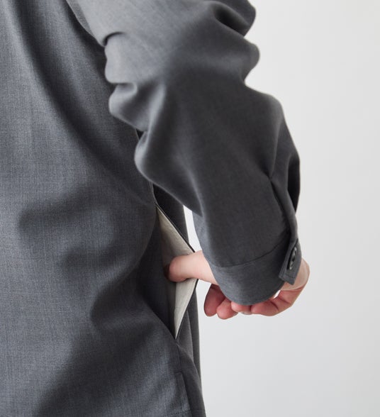 今回は、世界三大ウール生地産地である愛知県尾州の「西川毛織」で作られた、ウール×ポリエステルのギャバジン生地を採用しました。