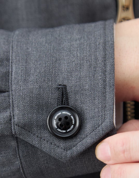 8.袖先のロゴ入りボタンもアクセントに