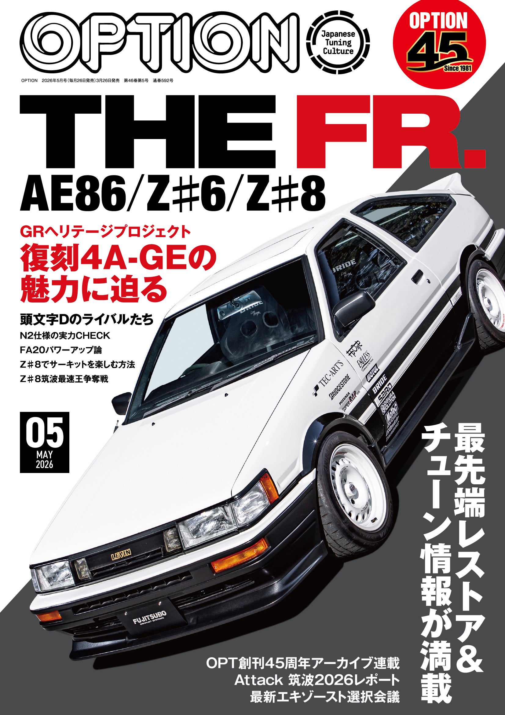 オプション2026年5月号発売!特集は「THE FR.ーAE86/Z♯6/Z♯8ー」