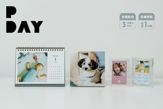 「PDAY(ピーデイ)」は、2018年にコイデカメラとモノグラムがリリースした、写真をカタチにするサービスです。トレカ、カレンダー、デコール(木製パネル)を1個から作成可能。アプリのインストール不要で、スマホやパソコンからオンライン上で簡単に注文し、宅配便またはコイデカメラ直営店で受け取ることができます。
