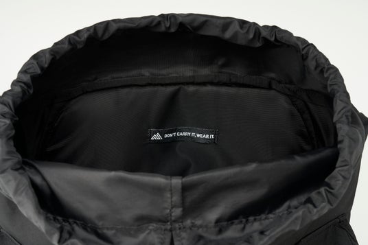 ブランド創業者の理念である「DON’ T CARRY IT,WEAR IT」のタグ