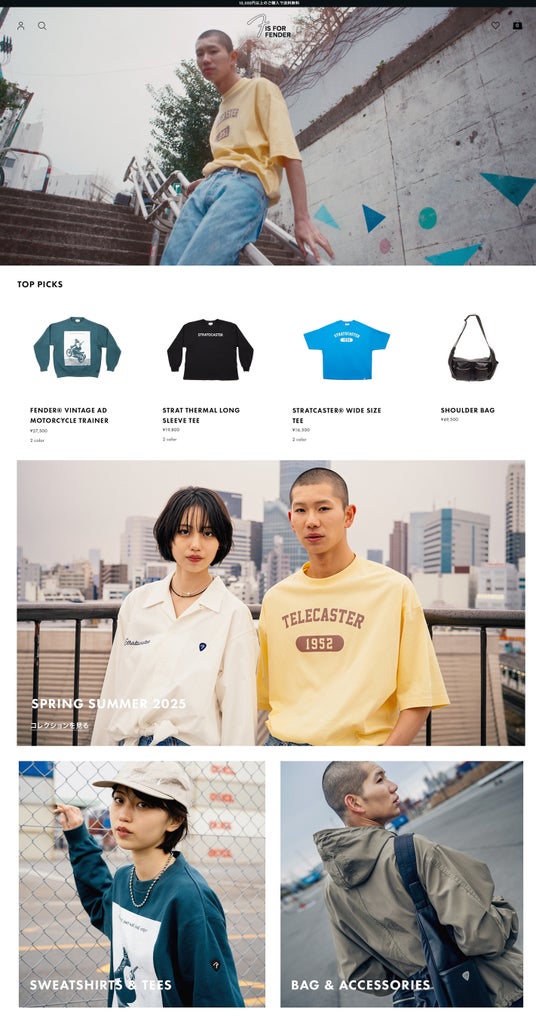 オープン記念の送料無料&ステッカープレゼントキャンペーンを実施!<Fender初のオリジナルファッションブランド 「F IS FOR FENDER」> 2025年 春夏コレクションが登場!公式オンラインストアもオープンへ。